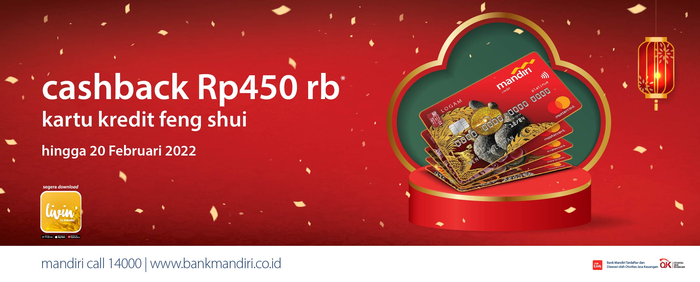 Bank Mandiri berizin dan diawasi oleh Otoritas Jasa Keuangan (OJK) dan Bank Indonesia (BI), serta merupakan peserta penjaminan Lembaga Penjamin Simpanan (LPS)