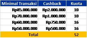 • Pembayaran cashback dilakukan pada Billing Statement (Tagihan Kartu Kredit) maksimal 2x cetak tagihan.