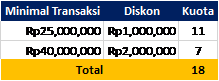 Berlaku Kartu:   Mandiri Golf Signature, Mandiri Prioritas, Mandiri Signature, Mandiri World Elite