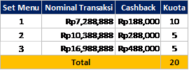 Berlaku Kartu:   Mandiri Fengshui Card, Mandiri Golf Platinum, Mandiri Golf Signature, Mandiri Platinum, Mandiri Prioritas, Mandiri Signature, Mandiri World Elite