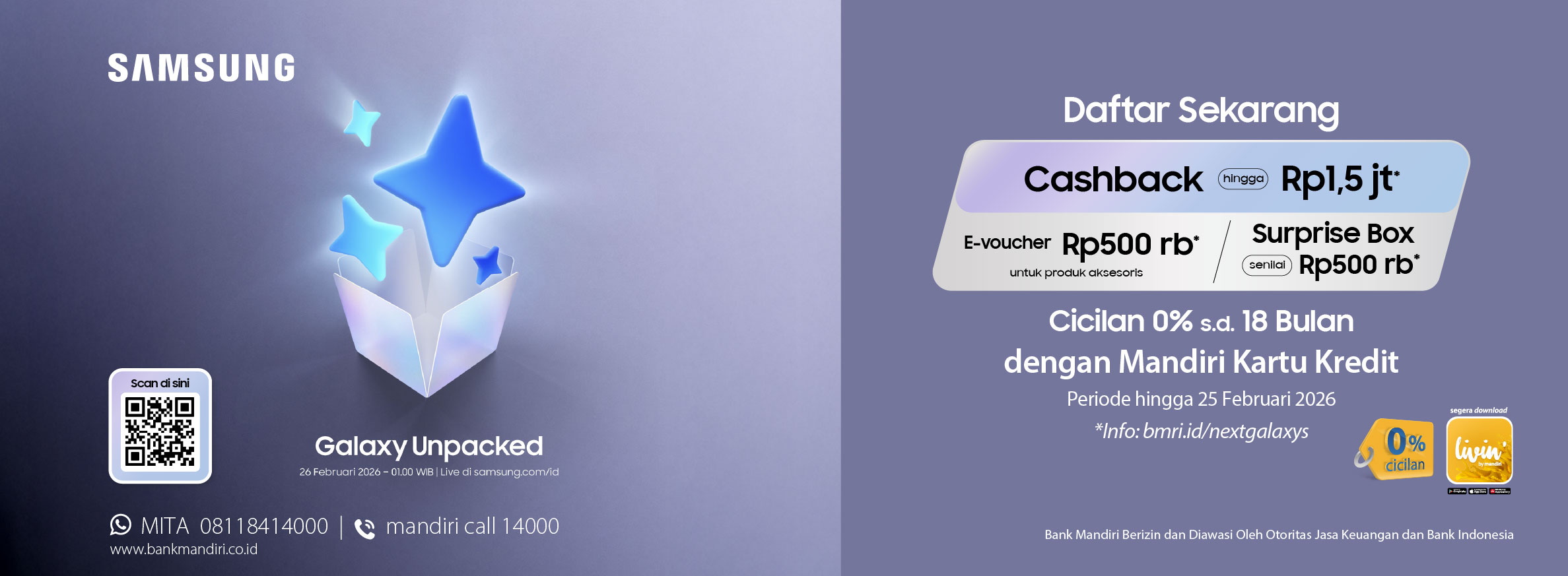 Apply & Tingkatkan Transaksi dengan Mandiri Kartu Kredit Golf Dapatkan Huawei Watch GT6 Pro x Honma & produk Huawei lainnya! Diskon Rp400 ribu + Cashback Rp200 ribu dengan Mandiri Kartu Kredit Apply & Tingkatkan Transaksi d...