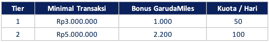 • Nasabah wajib terdaftar sebagai anggota GarudaMiles (memiliki no akun GarudaMiles).