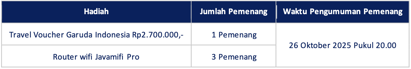 • Pemenang akan dihubungi pihak Bank Mandiri maksimal 2 minggu setelah pengumuman pemenang.