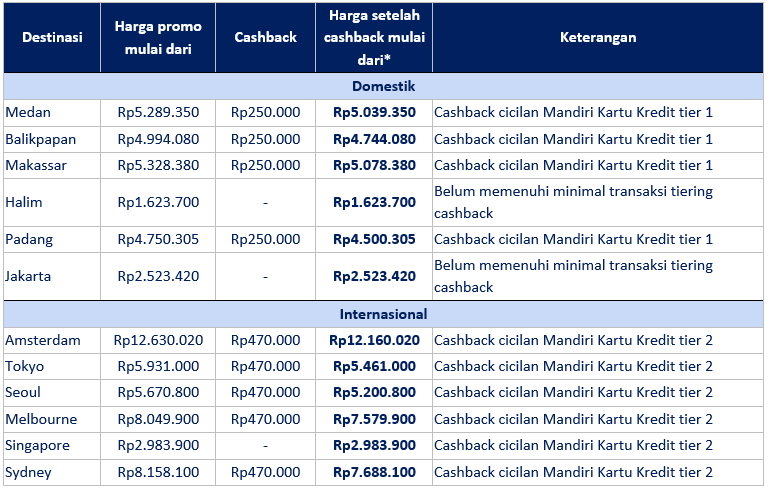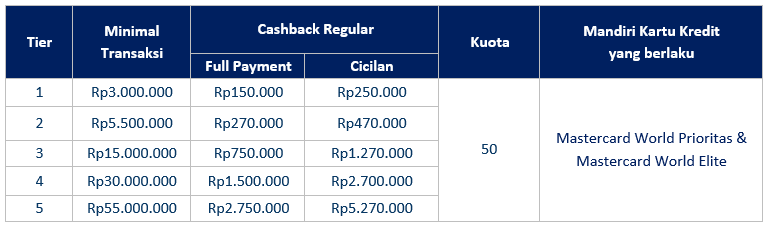 Berlaku Kartu:   Mandiri Prioritas, Mandiri World Elite