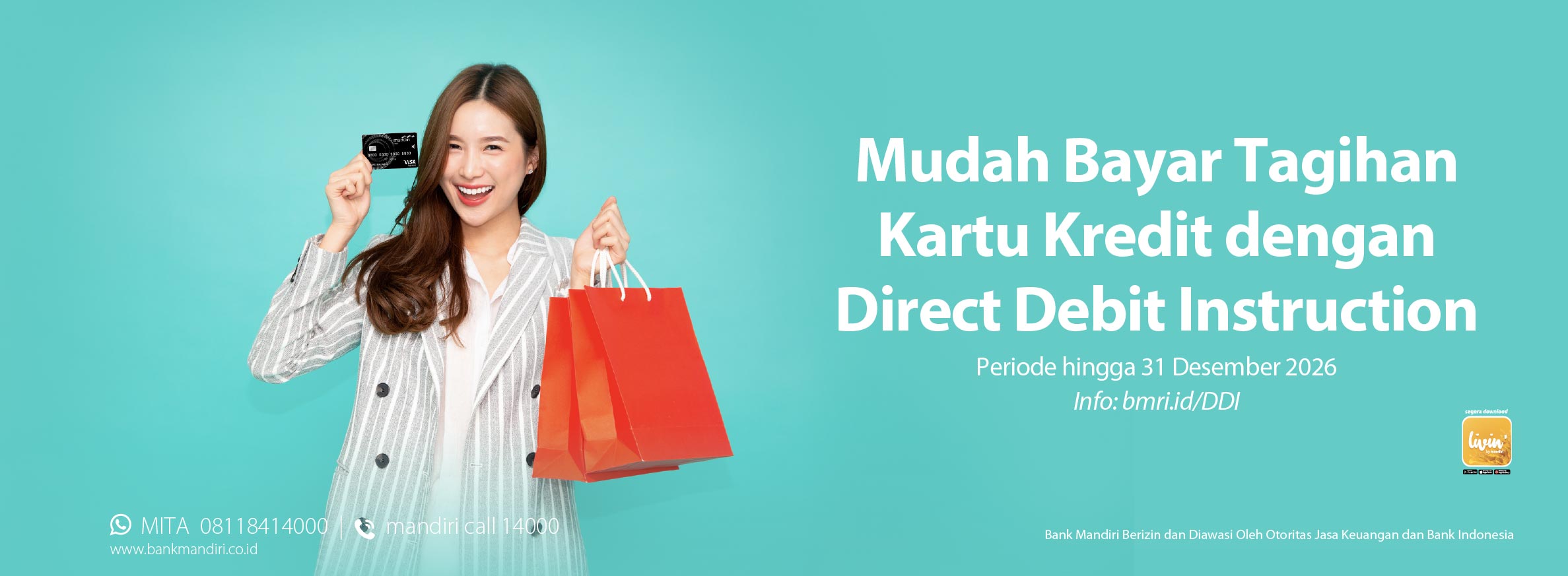 Yth. Nasabah Mandiri Kartu Kredit, Jaga kualitas kredit Anda pada Sisitem Layanan Informasi Keuangan (SLIK) OJK dengan melakukan pembayaran tagihan Mandiri Kartu Kredit sebelum tanggal jatuh tempo. Total tagihan Anda sebesar Rp xxxx , minimum payment sebesar Rp xxx, tanggal jatuh tempo dd-mm-yy, abaikan jika sudah melakukan pembayaran. Cara lebih mudah dan nyaman melakukan pembayaran Mandiri Kartu Kredit otomatis dari Mandiri Tabungan dengan mendaftarkan Direct Debit Instruction (DDI). Terima kasih atas kesetiaan Anda menggunakan Mandiri Kartu Kredit. Info lebih lanjut, klik bmri.id/ddi atau Mandiri Call 14000