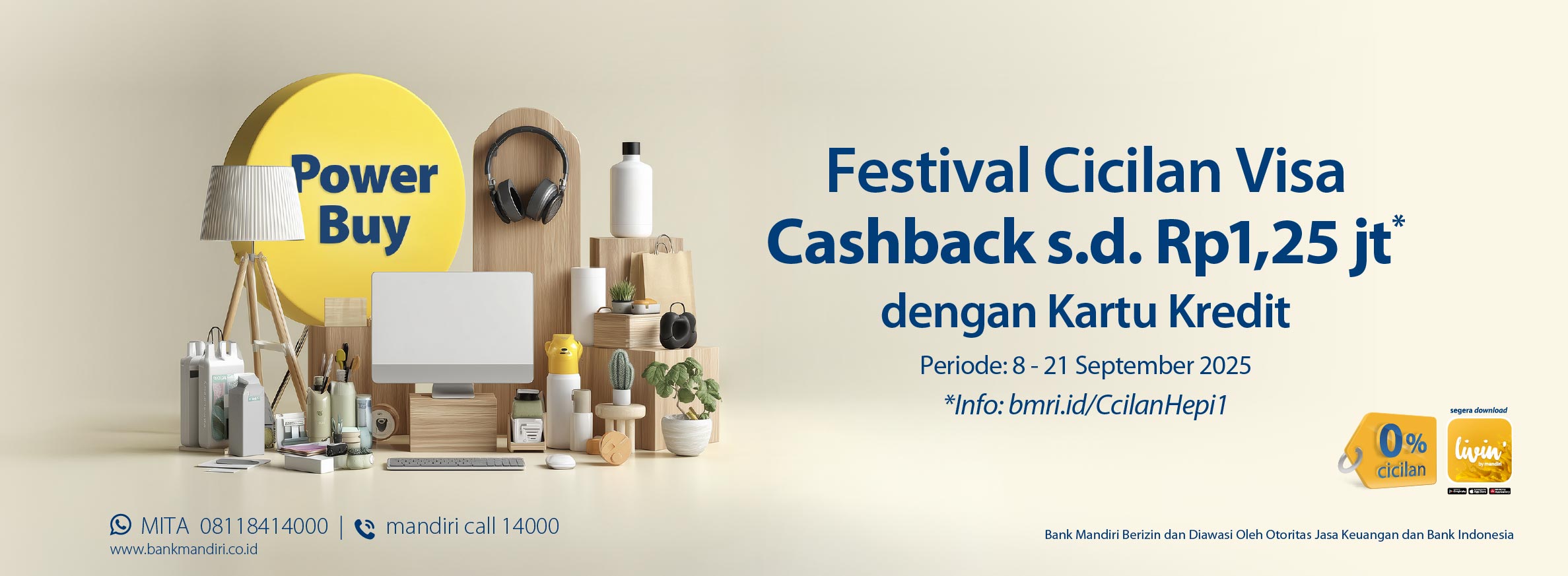 Belanja gadget dan furniture jadi ringan dengan ringan dan dapatkan hadiah cashback hingga Rp1,25 juta! Seluruh transaksi Power Buy dan Power Installment via Livin’ pada seluruh kartu yang dimiliki nasabah akan diakumulasikan. Periode transaksi: 8-21 September 2025