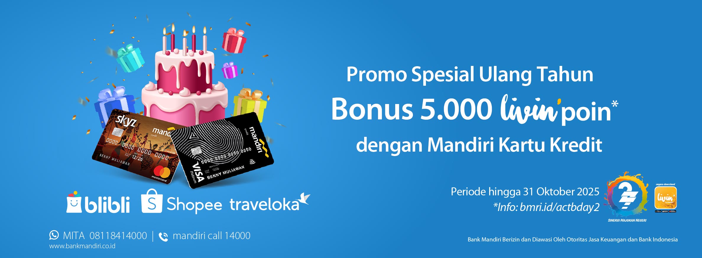 Program Ulang Tahun Nasabah Mandiri Kartu Kredit Bonus 5.000 Livin'poin